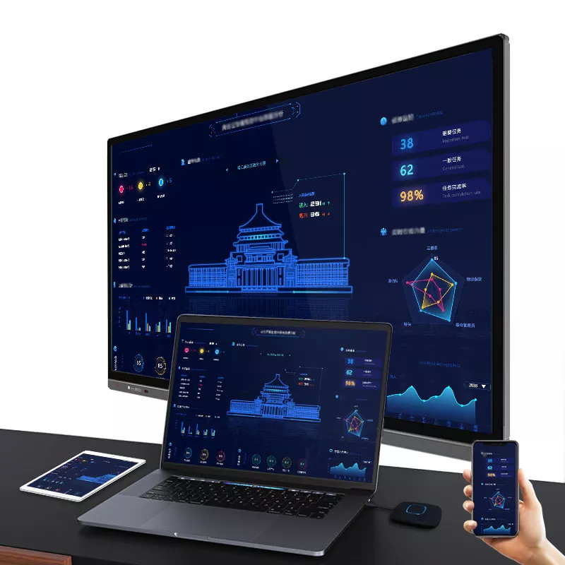 Conferentie alle-in-één machine van innovatie en afmeting kan het draadloze het scherm gieten door de toebehoren van de het schermoverdracht realiseren, of het celtelefoon, computer of tablet, enz. is. Het kan PPT, EX, WD-documenten en andere dossiers naar conferentieaanraking alle-in-één wirelessly overbrengen machine met één sleutel.